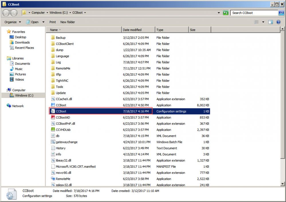 1. Open the CCBoot folder and then open the CCBoot.ini file (Figure 1).