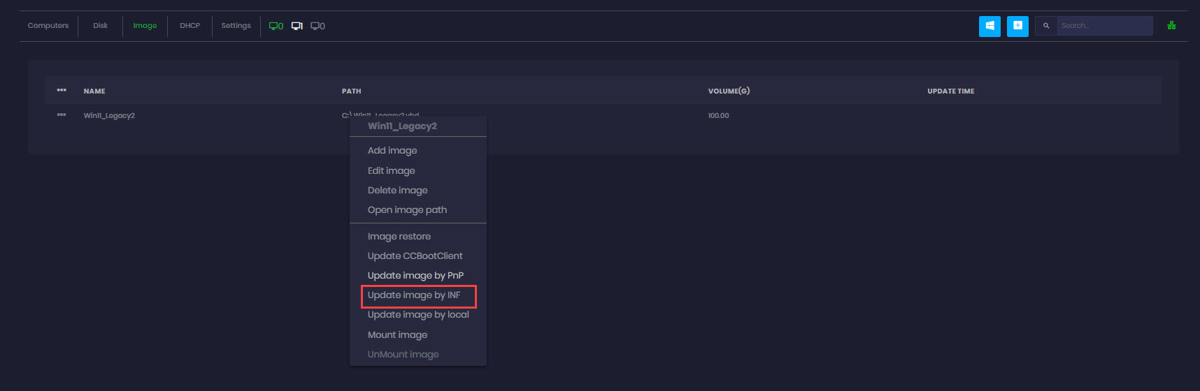 - Right click on the image and click on “Update image by INF” (Figure 1).