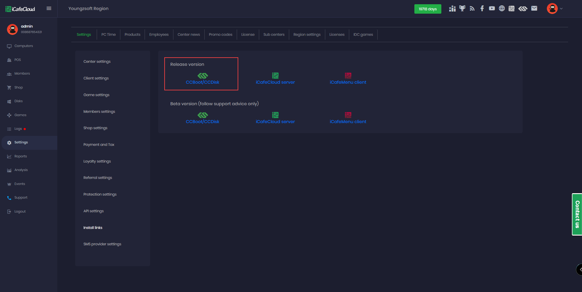 - The setup files can be found at settings - install links - CCBootCloud for the CCDisk server and client setup. (Figure 4)