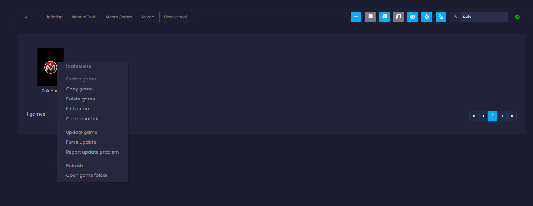 - On the Games page, search for iCafeMenu.When you right-click on it, you will see that iCafeMenu is automatically enabled by default.(Figure 7).