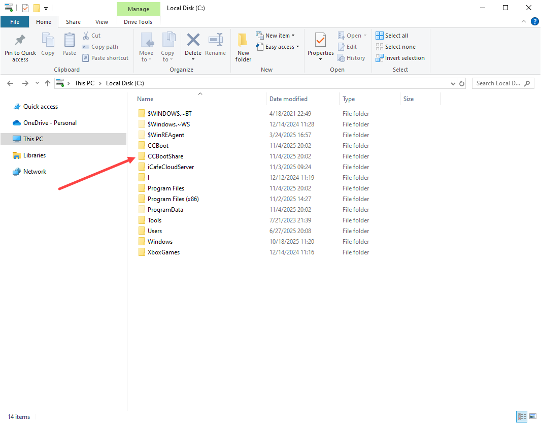 CCBoot network share folder