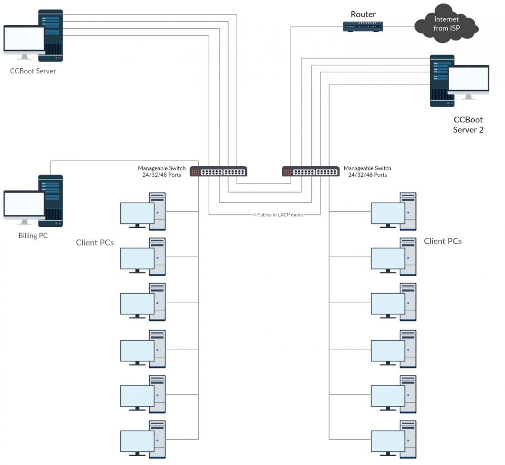 - You can use the following layouts as your base to set up your network for CCBootCloud.