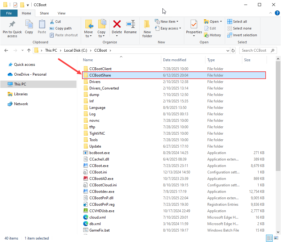 The following explains how to create a ccbootshare folder on the server, allowing client PCs to access it for uploading images, logs, Steam data, shaders, or other necessary files.