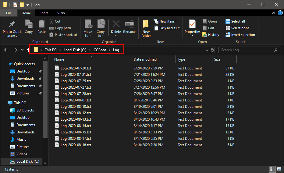 - You can find the log folder in the CCBootCloud installation folder (Figure 1).