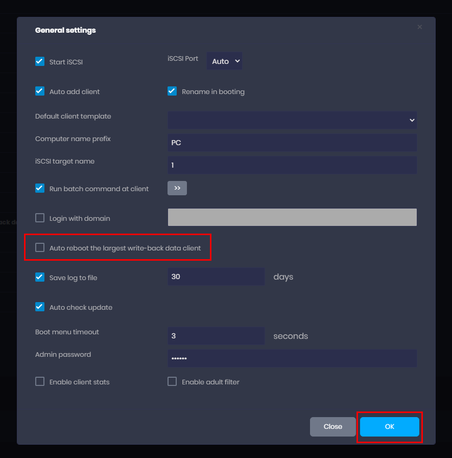 - Go to the general settings and uncheck “auto reboot the largest writeback data client” and click the OK button (Figure 1).