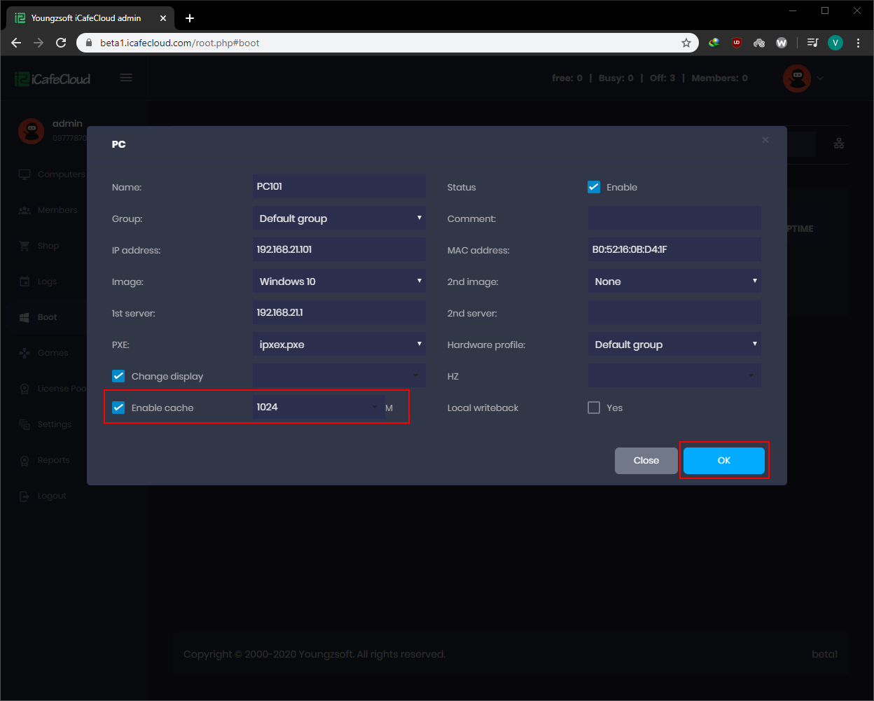 - Go to the boot page from CP of iCafeCloud and Computers page respectively. Then right click on the PC and select “Edit pc” (Figure 1).