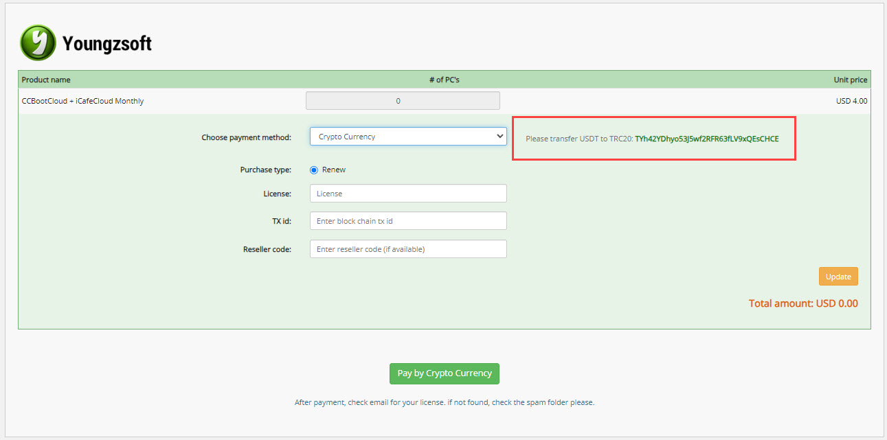 - Once you've chosen the cryptocurrency option, a section on the side will display the TRC20 address to which you should send the payment. (Figure 2)