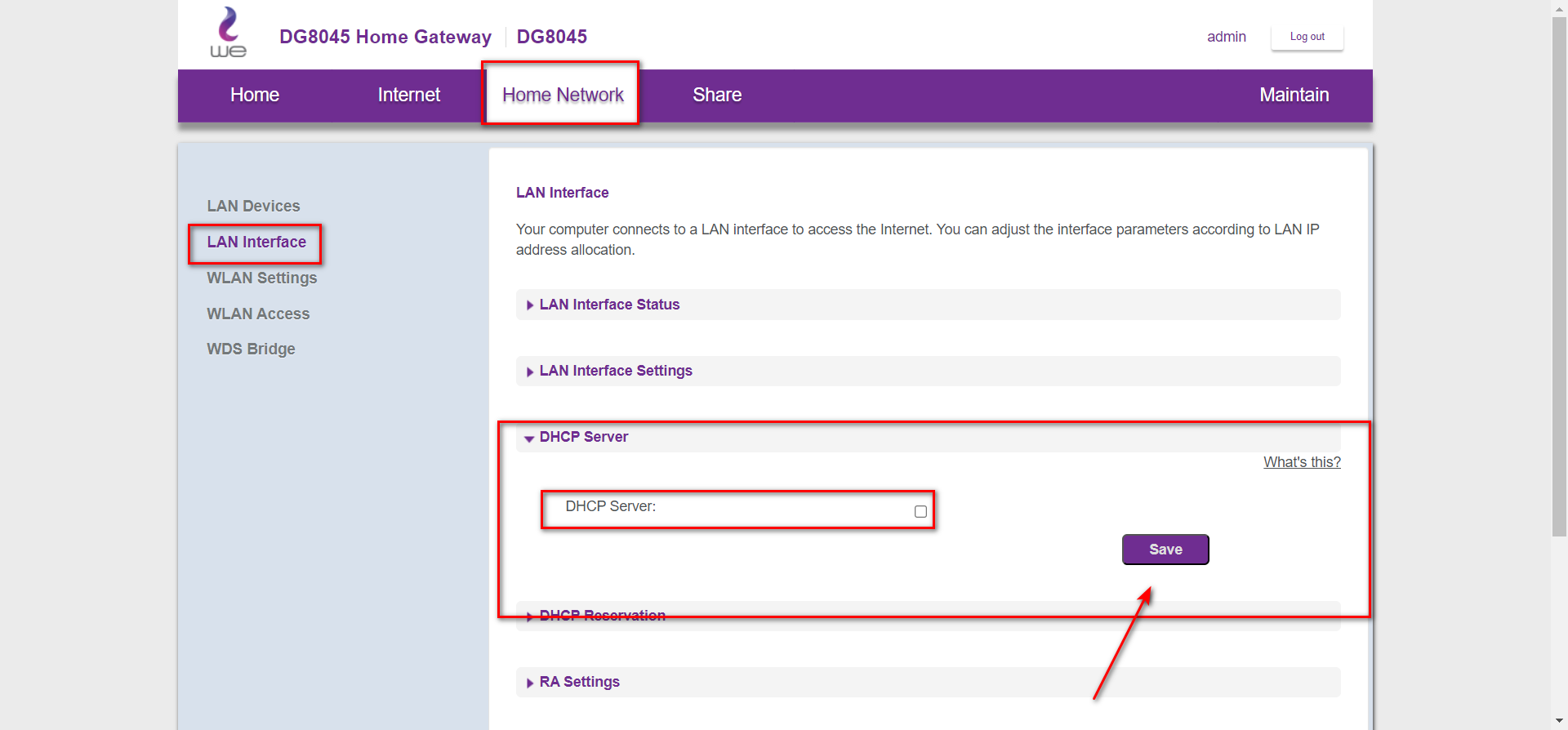 Disable DHCP on Lan