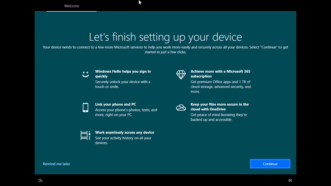 Disable setting up your device in Windows 10
