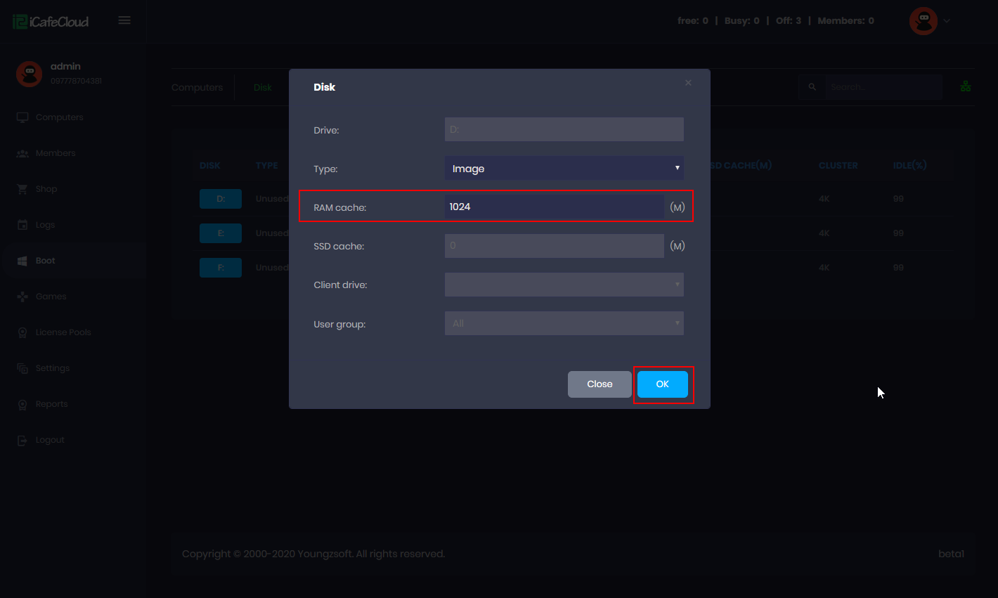 - Now the disk is set as an Image disk. Now let’s setup disk cache. On the RAM Cache field, enter desired RAM cache value for the disk. Press “OK” to apply the settings (Figure 3).