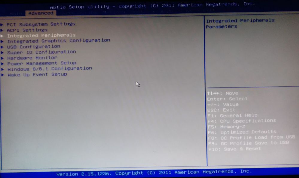 - Go to the "Advanced" tab, and select the "Integrated Peripherals" option and press "Enter" (Figure 1).