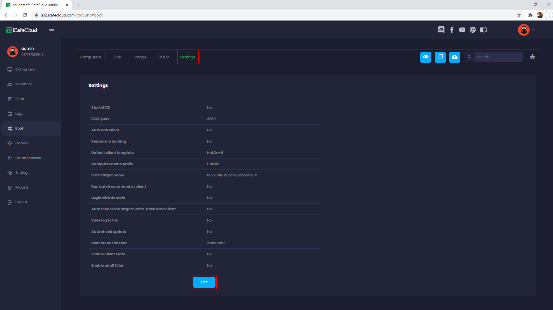 - From the CCBoot Cloud CP on the “Settings” tab click the “Edit” button (Figure 1)