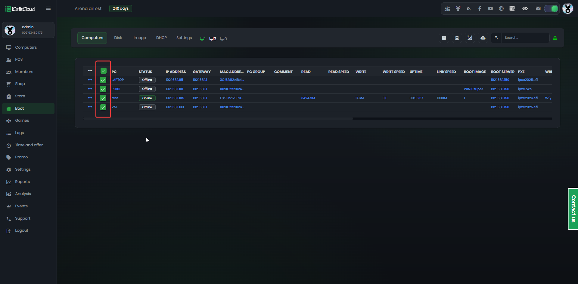 - On the Boot page, you can select multiple PCs or all PCs by clicking the top checkbox. (Figure 1)