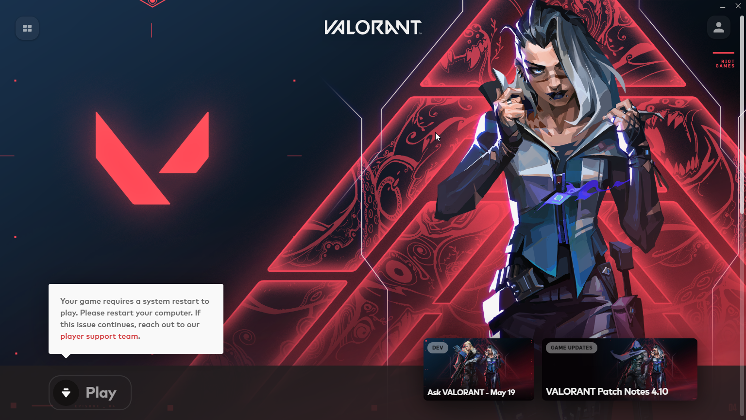 Valorant requires UEFI and SecureBoot enabled in Windows 11 because Valotant anticheat (Vanguard). When encountering the "Install" prompt instead of "Play" on the Riot Client after the game is updated on the server, you can resolve this issue by following the solutions below