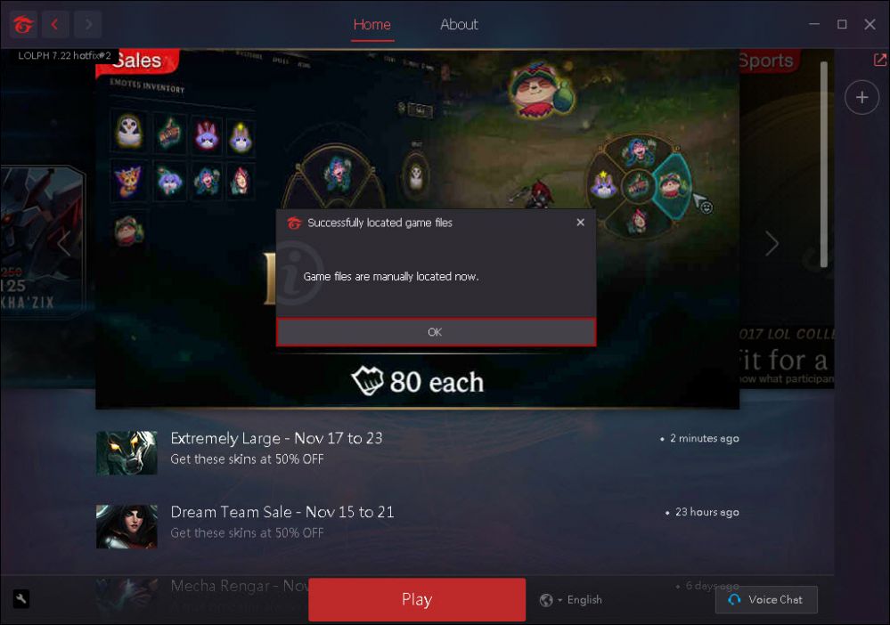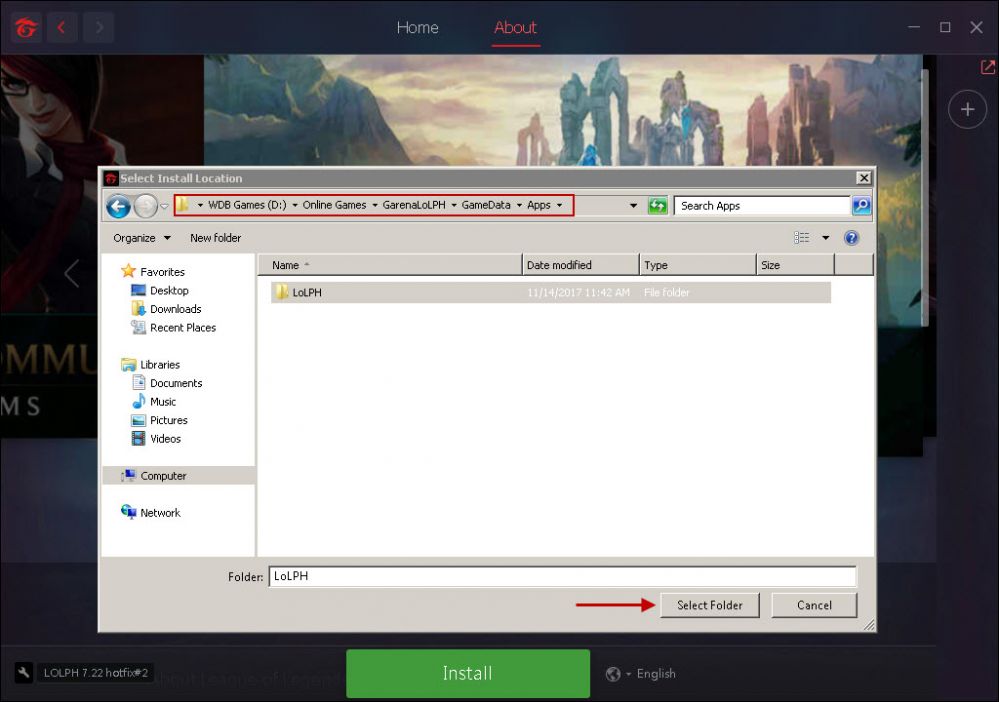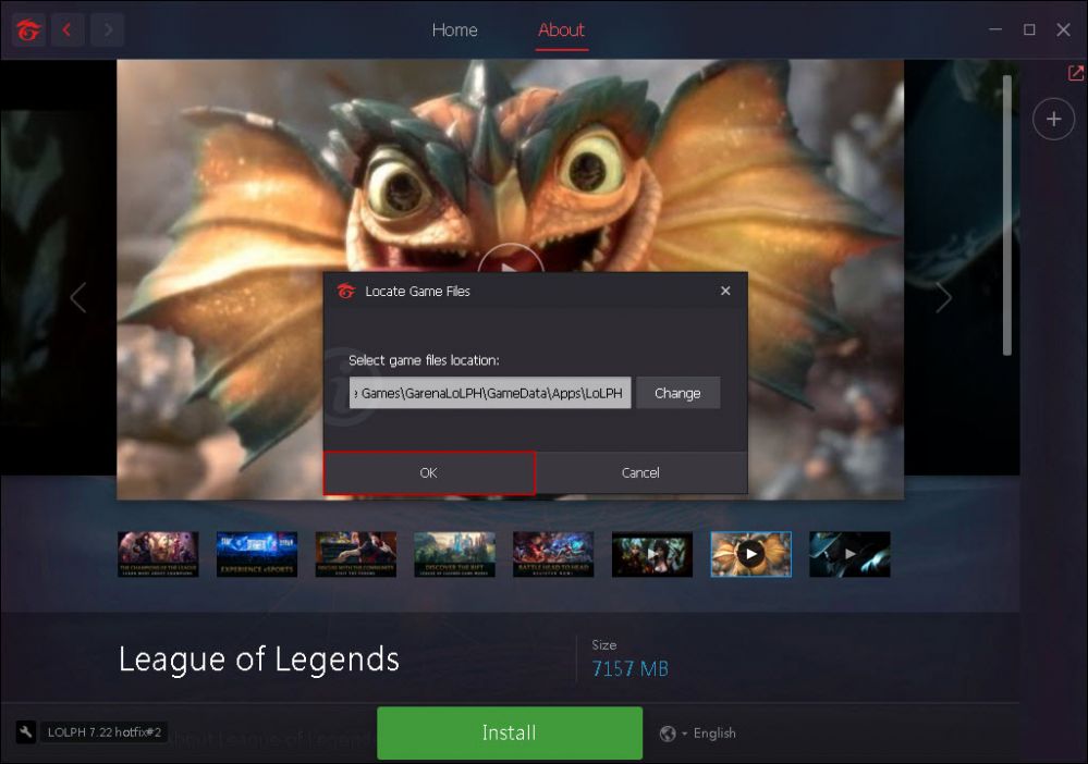6. After locating your garena league of legends folder click the "ok" button (Figure 6).