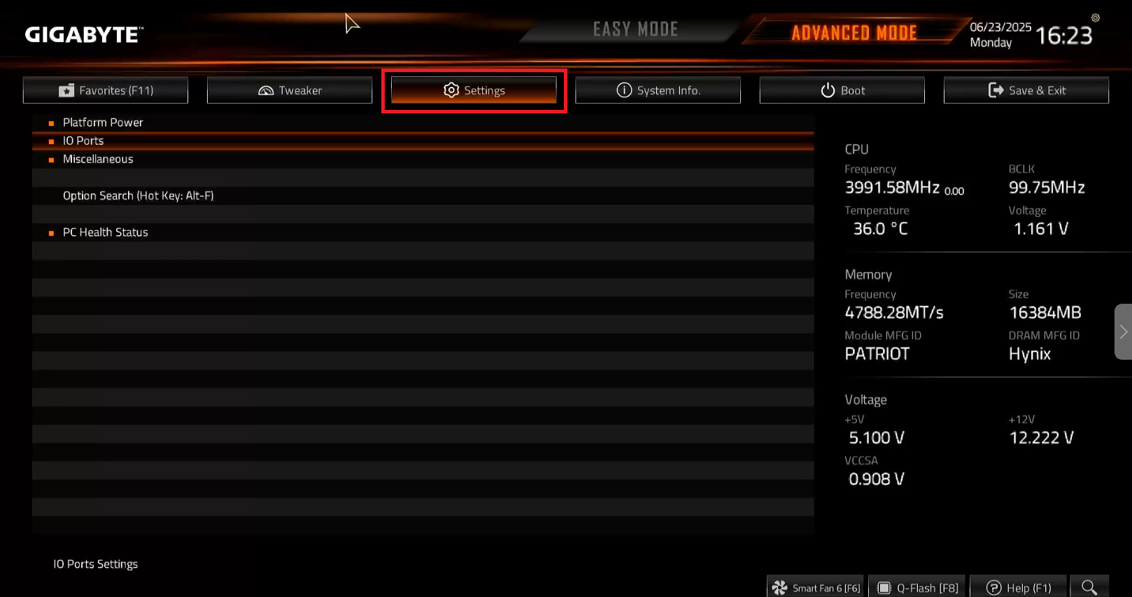 - Then go to Settings and select IO Ports(Figure 2)
