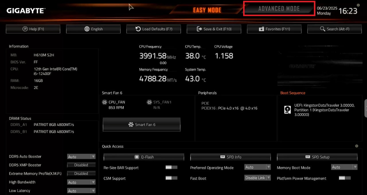 - Once inside, switch to Advanced Mode to access detailed configuration options. (Figure 1)