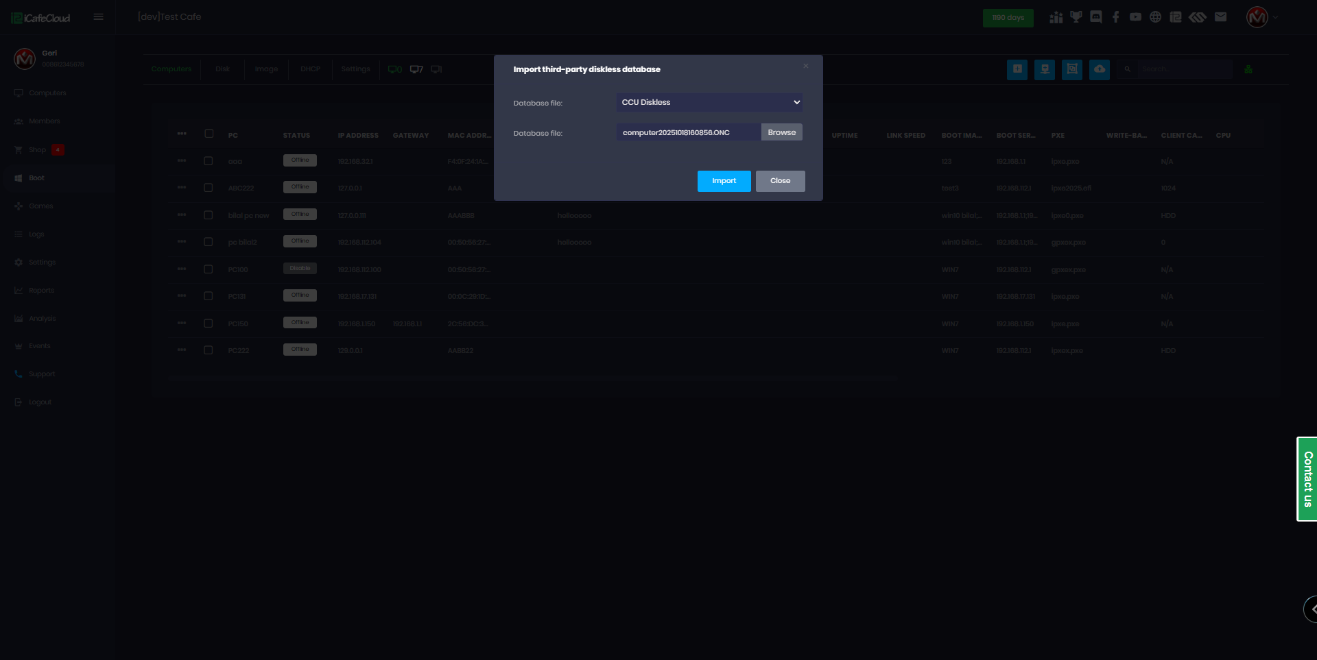 - Once the upload is complete, all the PCs will be displayed in a list, showing their PC names and MAC addresses imported from the database.