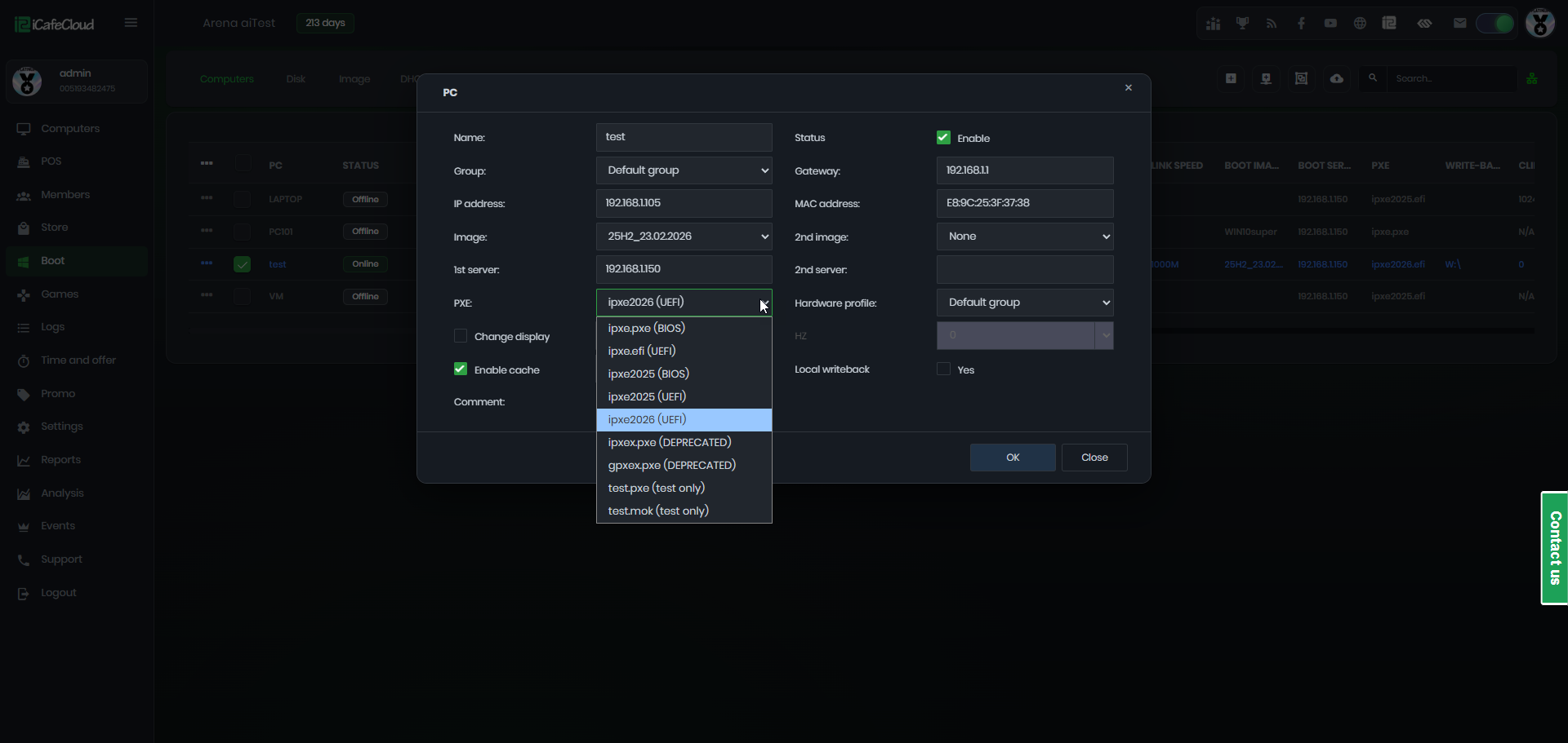 - To fix this problem you can change PCs PXE mode to ipxe2026.pxe (Figure 1)