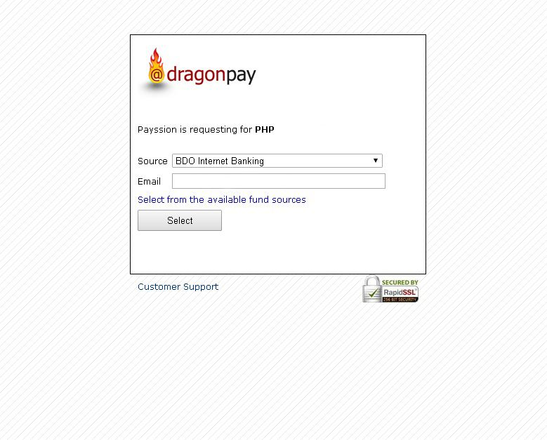 6. Let say you choose to send payment via "BDO internet banking", enter your email address and then click select button.