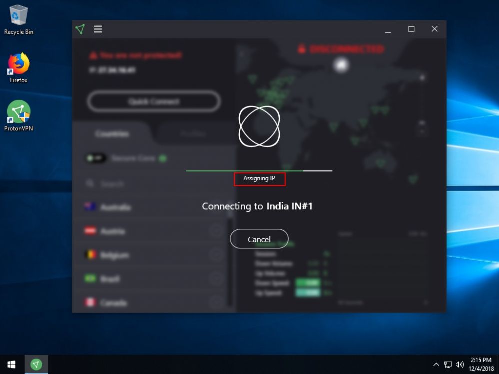 2. It will try to connect to the VPN network but it will be stuck at the "Assigning IP" stage (Figure 3).