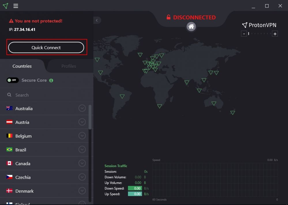 1. Let's take ProtonVPN for example, click on the "Quick connect" button to try to connect to the VPN network (Figure 2).
