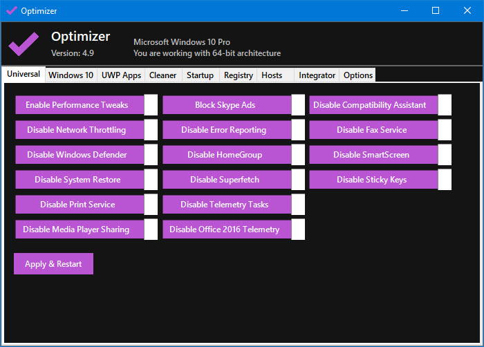 The following provides steps to optimize Windows 10 for better performance in a diskless environment by using an Optimizer tool