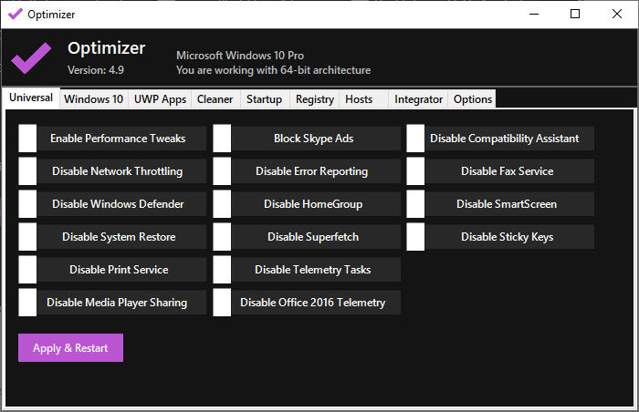 - Right click the optimizer and then run it as administrator, you will see the main window (Figure 1).