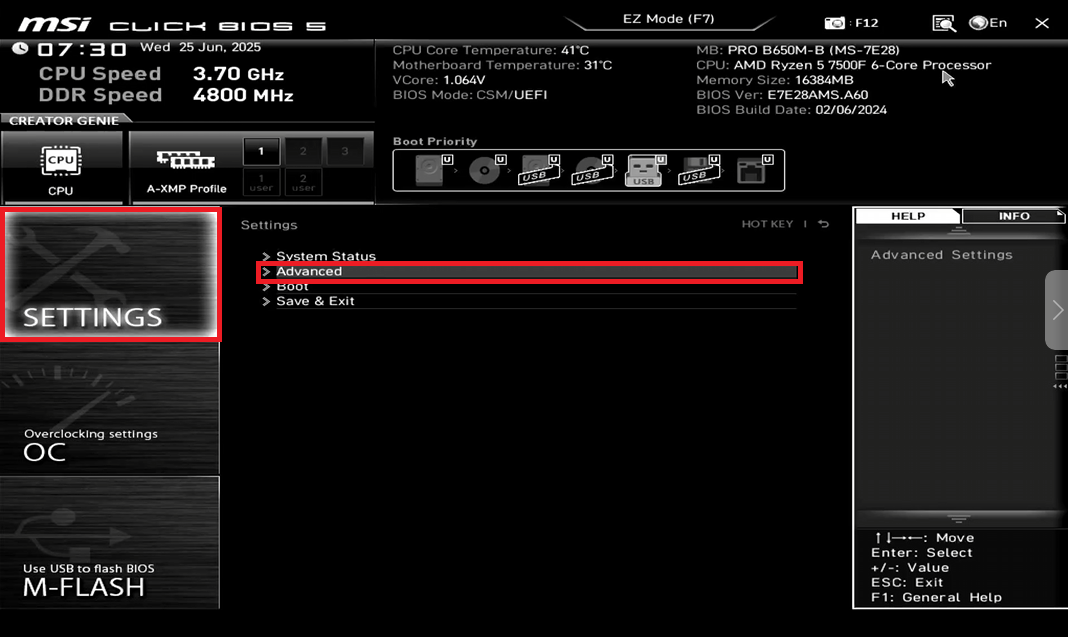 - To enter the BIOS and press F7 to switch to advanced mode, If you see simplified mode. (Figure 1)