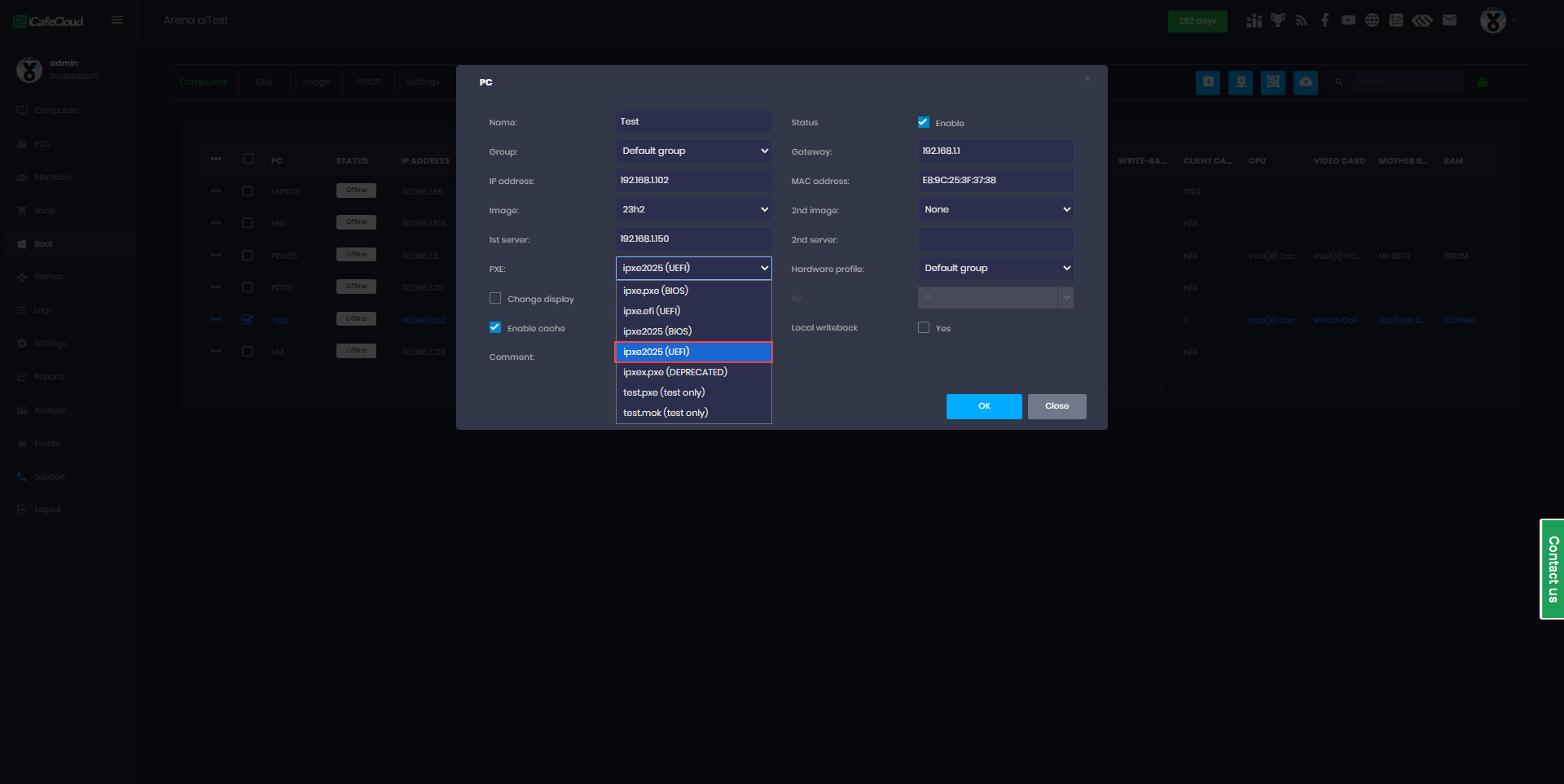 - Once the image is ready on the iCafeCloud admin panel in the Boot section , edit the client PC and select ipxe2025 on the PXE field. (Figure 25)