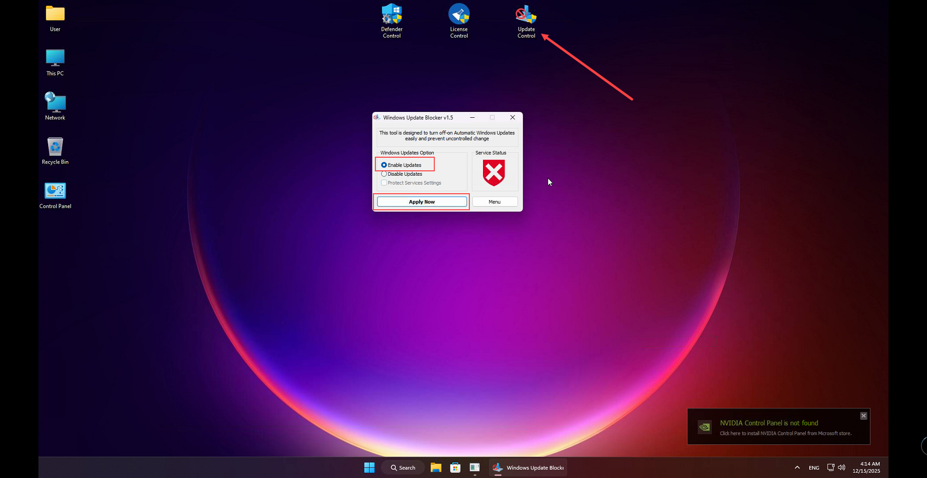 - Enable Windows Updates. If you are using a Super Image from CCBoot and click Update Control Software on the desktop and enable updates.(Figure 1)