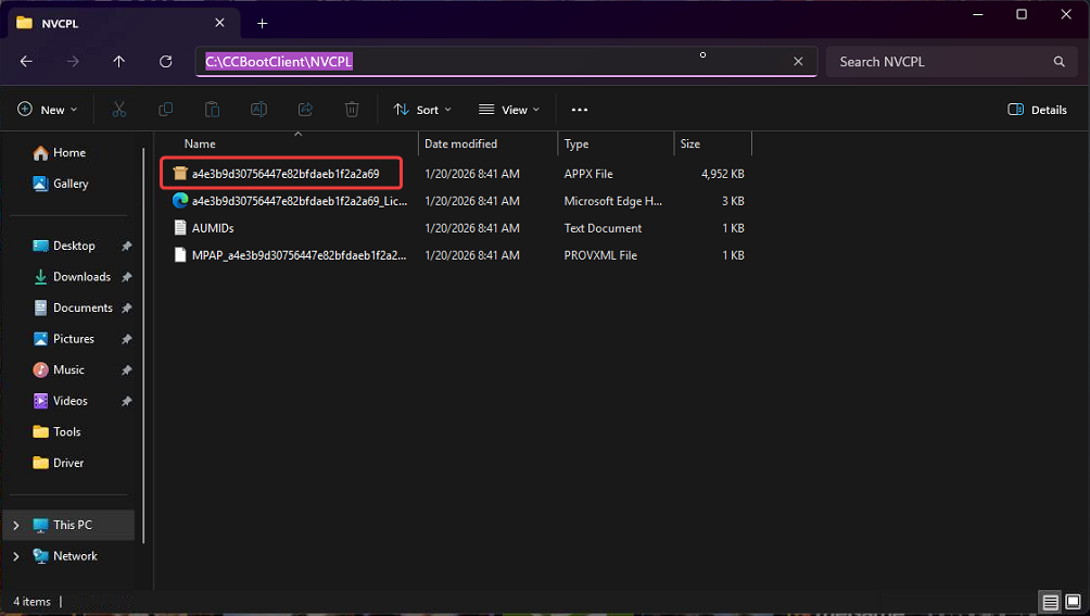 - Locate the file at C:\CCBootclient\NVCPL (Figure 1)