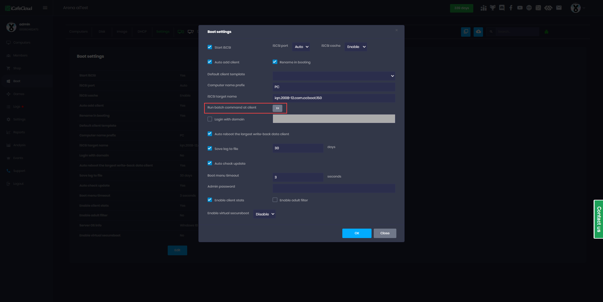 - In the Boot Settings, locate the 'Run batch command at client' option, and click the button next to it.(Figure 2)