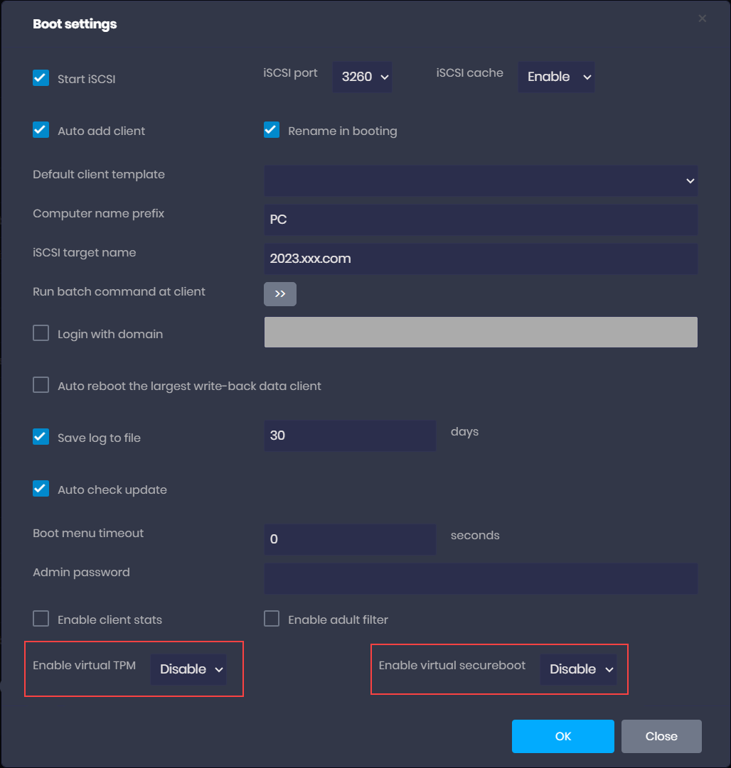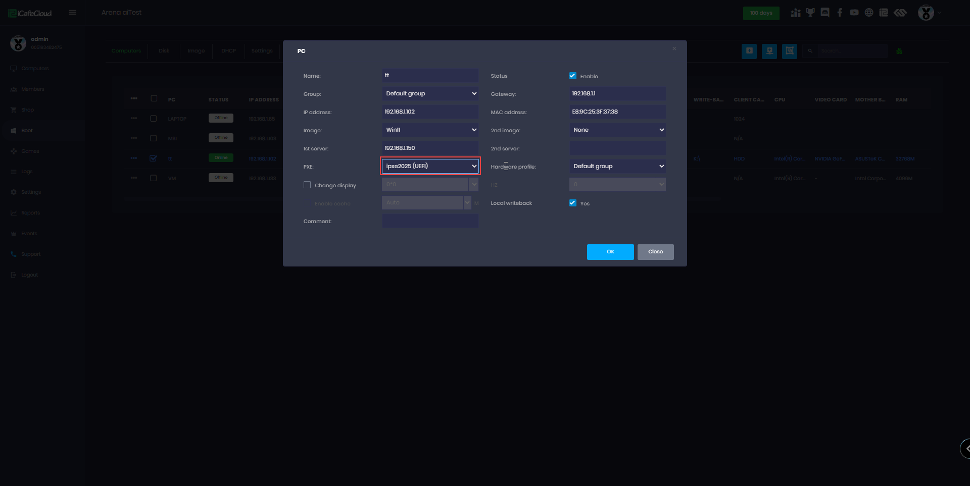 - On the Boot page, select ipxe2025 (UEFI). The new version CCBootCloud works only with ipxe2025, whether using BIOS or UEFI. It does not support other PXE versions.(Figure 2)