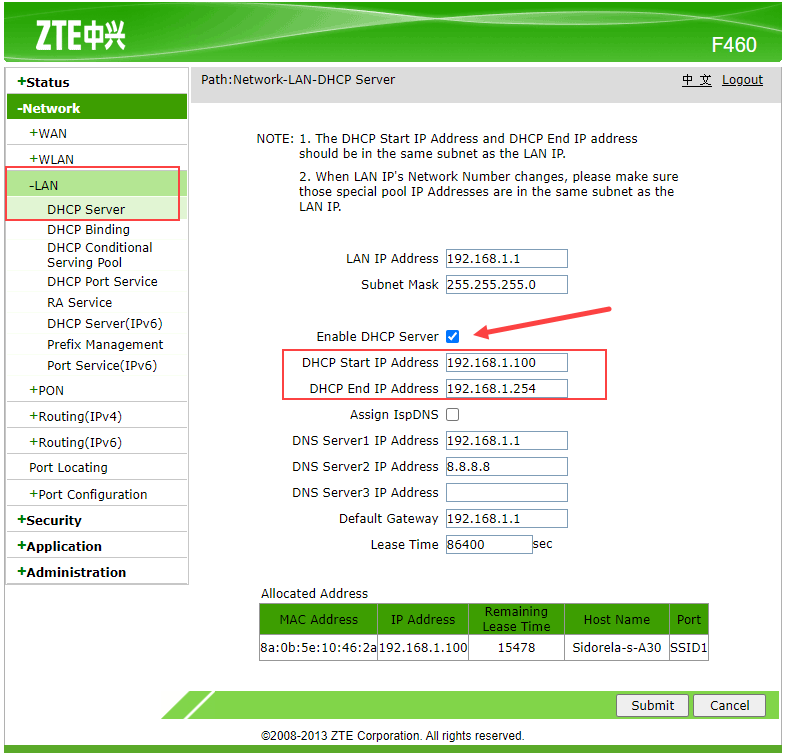 - Click to enable the DHCP server if it is not already enabled, and configure the DHCP start IP address and DHCP end IP address.