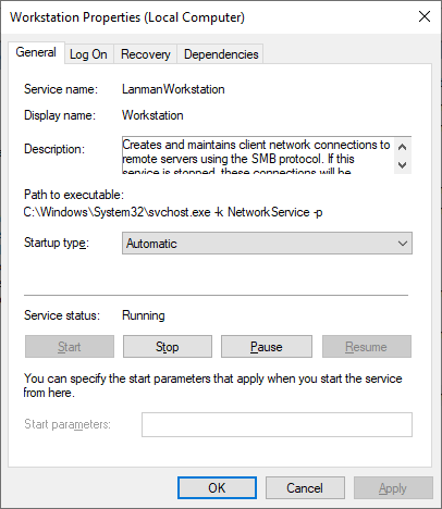 - To fix the shared folder access, make sure the service “Lanmanworkstation” is set to “Automatic” startup and running (Figure 2).