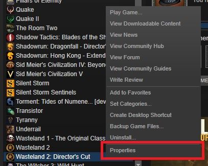 2. From the Library section, right-click on the game and select "Properties" (Figure 1).